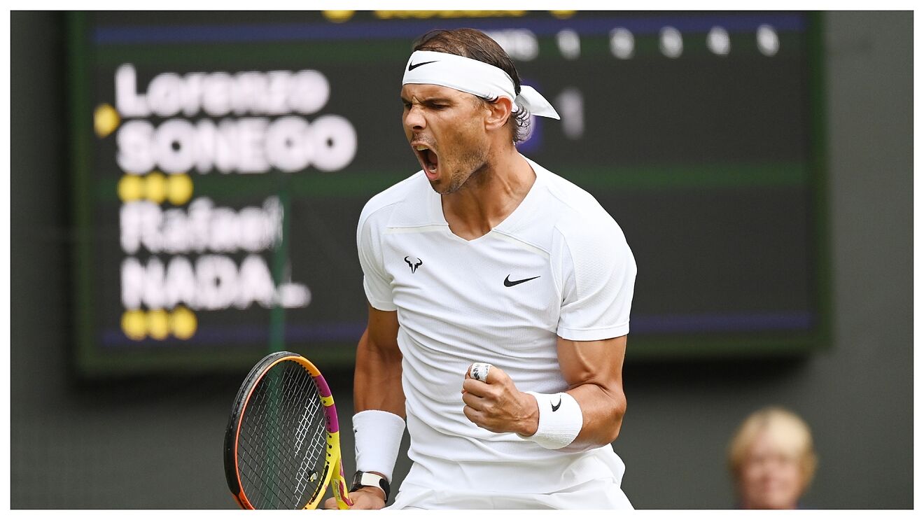 Campeón este año en el Abierto de Australia y en Roland Garros, Nadal regresó desde el vestuario se quedó con ese set por 7-5, para luego caer en el tercero 6-3, volver a imponerse en el cuarto 7-5 y quedarse con el quinto 7-6, luego de lograr el tie break por 10-5, obtener una nueva victoria en una semifinal de Grand Slam y ampliar su invicto en los “Majors” a 19-0.