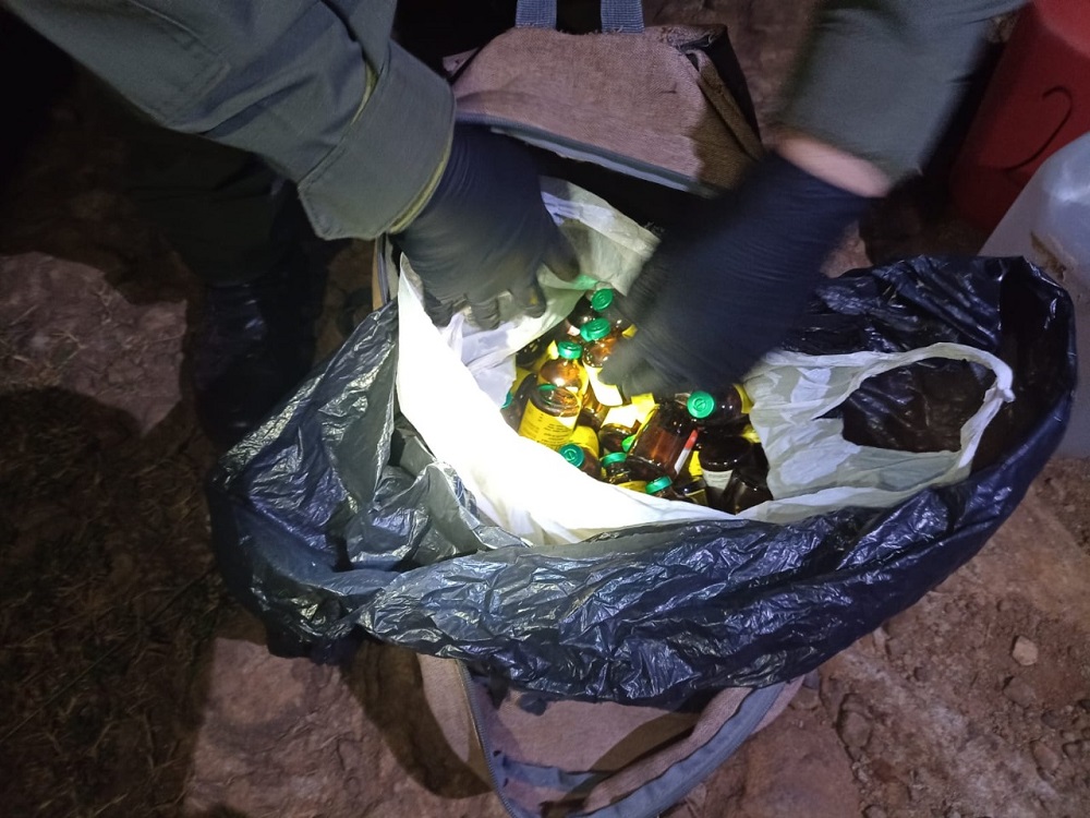 Efectivos de la Sección “Puerto Rico” de Gendarmería Nacional, dependientes del Escuadrón 11 “San Ignacio”, efectuaban un patrullaje motorizado y pedestre sobre barrios periféricos, próximos a la costa del río Paraná, cuando advirtieron la presencia de dos ciudadanos que circulaban a pie por una senda que conecta con el sector costero y quienes, al advertir la presencia del personal de la fuerza, arrojaron una mochila y dos bidones, y se adentraron en la vegetación de la zona.
