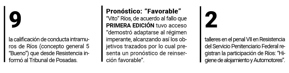 Ríos, también conocido como “Vito”, esta semana logró la libertad ambulatoria concedida por el juez de Ejecución Penal del Tribunal Federal, Manuel Alberto Jesús Moreira.