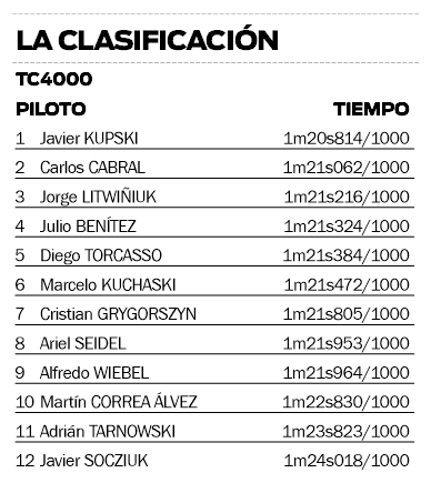 Valentino Mattive (16), una de las promesas locales, dio la nota y se quedó con la pole position en la Clase 3. Kupski fue el más rápido en el TC4000, mientras que Kevin Johnson voló en la Clase 1 y José Luis De Lima hizo lo propio en la Copa Fiat. Hoy, series y finalísimas en Oberá.