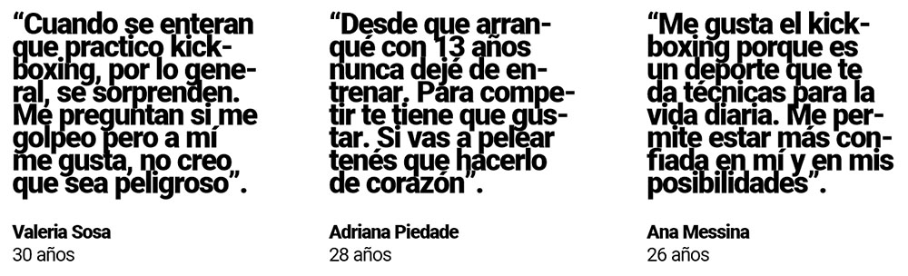 No se dejan llevar por lo que los estereotipos dicen que deberían practicar como deporte, muy por el contrario, se sacan el peso de los mandatos, se calzan los guantes y se suben al cuadrilátero. Valeria y Adriana ya tienen experiencia en competencias mientras que Ana se prepara para el debut el próximo noviembre.