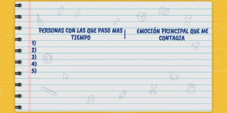 Seguramente a esta altura debes estar pensando en quienes son estas cinco personas, te propongo que hagas una lista de las emociones que suelen expresarte cada una de ellas.