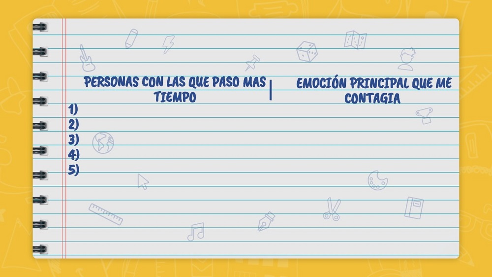 Seguramente a esta altura debes estar pensando en quienes son estas cinco personas, te propongo que hagas una lista de las emociones que suelen expresarte cada una de ellas.