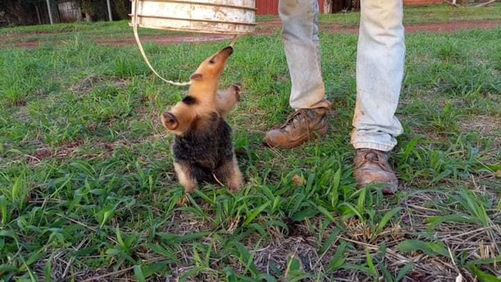 Los bomberos voluntarios de Garuhapé rescataron un ejemplar de tamanduá, que se encontraba en el patio de un vecino, de la zona del loteo Yerbal.