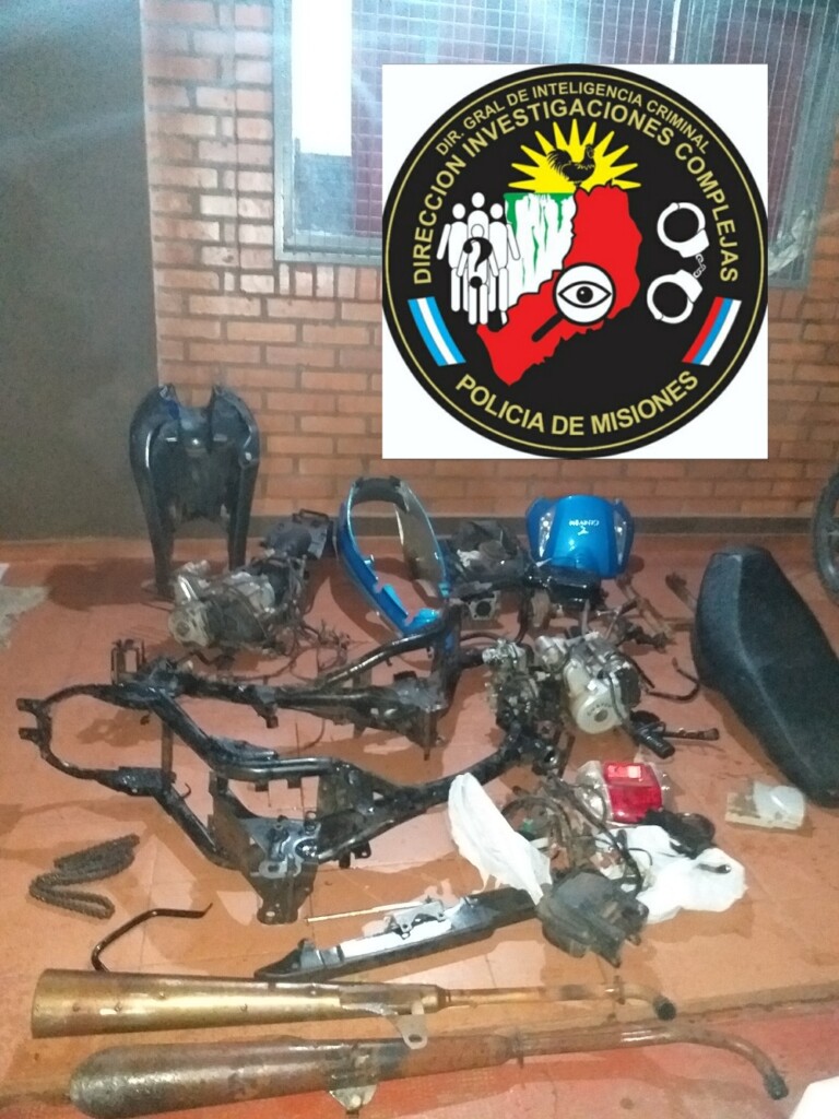 Este sábado por la tarde, en un domicilio ubicado en la avenida Zapiola de Posadas que funcionaba como “aguantadero”, los investigadores policiales secuestraron dos cuadros, dos motores y varias partes de motocicletas que fueron robadas.