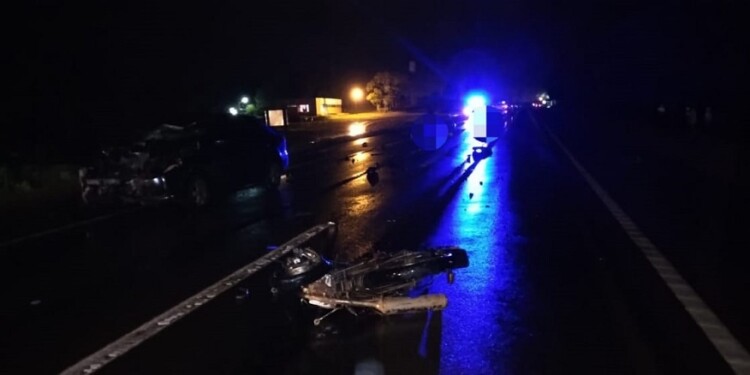 El hecho se registró a las 23:55 de ayer, cuando por motivos que se tratan de establecer la moto Yamaha YBR 125cc colisionó con un automóvil marca Volkswagen Voyage.