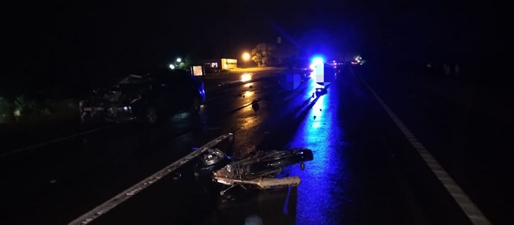 El hecho se registró a las 23:55 de ayer, cuando por motivos que se tratan de establecer la moto Yamaha YBR 125cc colisionó con un automóvil marca Volkswagen Voyage.