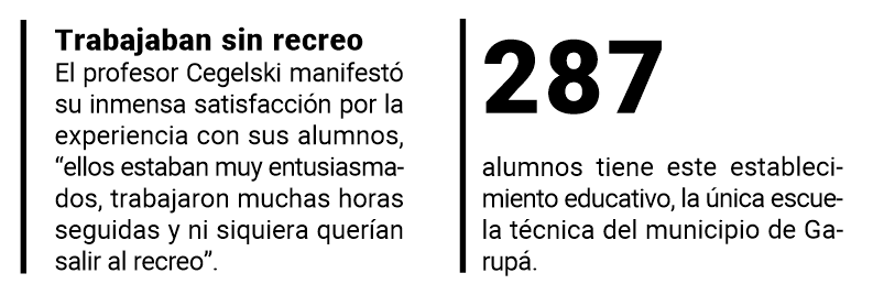 Con apoyo de su directora, un docente del Instituto de Enseñanza Agropecuaria y Electromecánica 7 de Garupá suplió a pura voluntad la carencia de un taller institucional para que sus alumnos del último año, la primera promoción de técnicos en equipos e instalaciones electromecánicas de esta secundaria técnica, pudieran aplicar en la práctica los conocimientos que hasta el momento sólo eran teóricos.