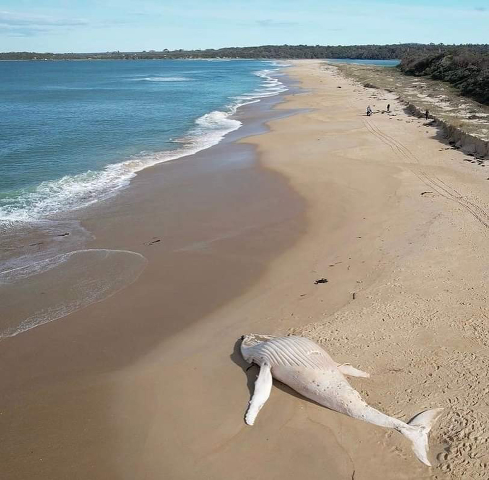 Un residente del estado australiano de Victoria, en el sur de la isla, encontró muerta en la playa de Mallacoota una rara ballena albina.