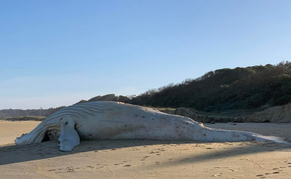 Un residente del estado australiano de Victoria, en el sur de la isla, encontró muerta en la playa de Mallacoota una rara ballena albina.