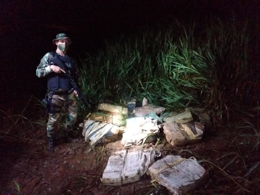 Personal de la Prefectura Naval Argentina decomisó un cargamento de más de 800 kilos de marihuana, los cuáles pretendían ser ingresados a Misiones desde Paraguay por la costa del río Paraná, más precisamente en Montecarlo, vía el río Paraná.