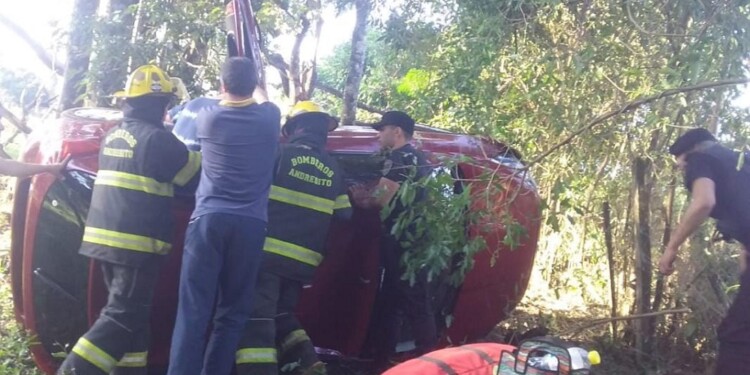 Este miércoles por la tarde y sobre la ruta provincial 19, a la altura de la localidad de Andresito, la conductora de un Ford Ka perdió el control de su vehículo por razones que se trata de establecer cuando circulaba en sentido Wanda-Andresito y despistó, quedando el auto en posición vertical sobre una zona de monte, al costado de dicha calzada.