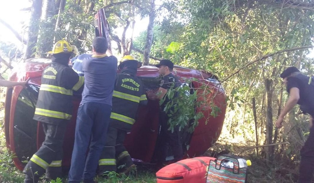 Este miércoles por la tarde y sobre la ruta provincial 19, a la altura de la localidad de Andresito, la conductora de un Ford Ka perdió el control de su vehículo por razones que se trata de establecer cuando circulaba en sentido Wanda-Andresito y despistó, quedando el auto en posición vertical sobre una zona de monte, al costado de dicha calzada.