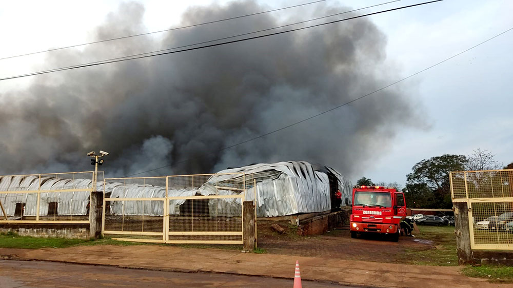 El comisario confirmó al programa El Aire de las Misiones que “la parte media de las instalaciones todavía sigue quemando pero ya sin peligro de propagación”.