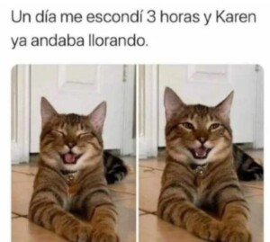 La Karen ficticia es una dueña “pesada”, es la que mima tanto a su gatita (gatito, el que esté en ese momento) que recibe hasta retos de su mascota que además es muy terrible. Historias muy graciosas siguen surgiendo, incluso cuando dice “Apenas me rasco un poquito y la Karen ya me hace la bañación porque dice que tengo pulgas. “Me picaba no más ¡Karen! ¡Me picaba!”.