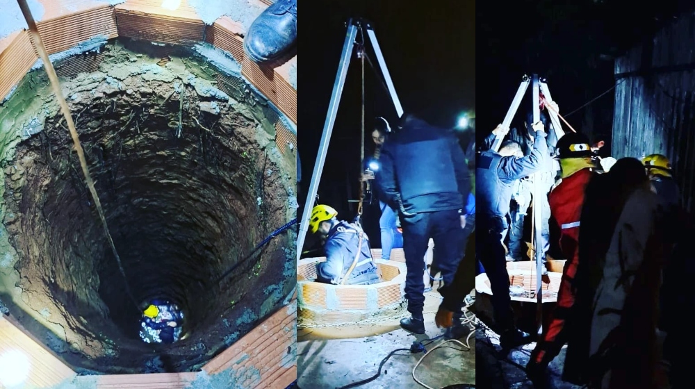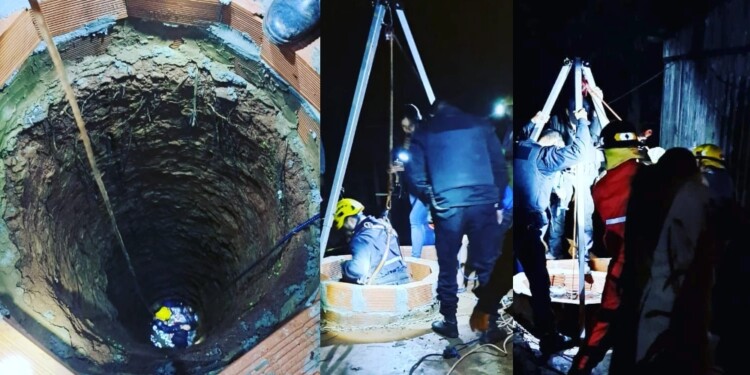 Los rescatistas trabajaron rápidamente y tras bajar hasta el fondo del pozo lograron sacar al hombre de 38 años quien se encontraba lúcido y presentaba lesiones leves.