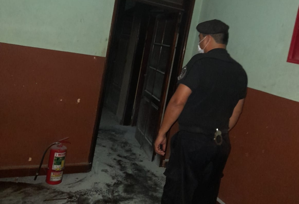 Al llegar al lugar constataron que había un foco ígneo en el pasillo de la institución educativa por lo que solicitaron la presencia de los bomberos voluntarios que lograron sofocar el incendio que se había producido en un tomar corriente de un tablero eléctrico.