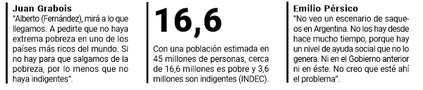 ¡Por qué no se dan cuenta de que no es política nada más, la puta madre! Es obvio que esto no da para más. Es fácil Alberto, es muy sencillo el reclamo. Si no, para qué te pusimos ahí. Te pusimos ahí para que haya menos pobreza, no para que haya más. Si no te gusta el salario universal inventá otra cosa. No digas que hay que calmar a los mercados, vení y calmanos a nosotros. Algunos gauchos acá estamos dispuestos a dejar nuestra sangre en la calle para que no siga habiendo hambre en la Argentina”, enfatizó Grabois.