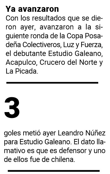 Se trata del batacazo, si se quiere, de Estudio Galeano sobre Atlético Posadas. El conjunto recientemente acoplado a los torneos de la Liga Posadeña es líder del Torneo Ascenso Unificado y ayer atendió a domicilio a Atlético Posadas, al que dejó fuera de competencia con un contundente 4-2.