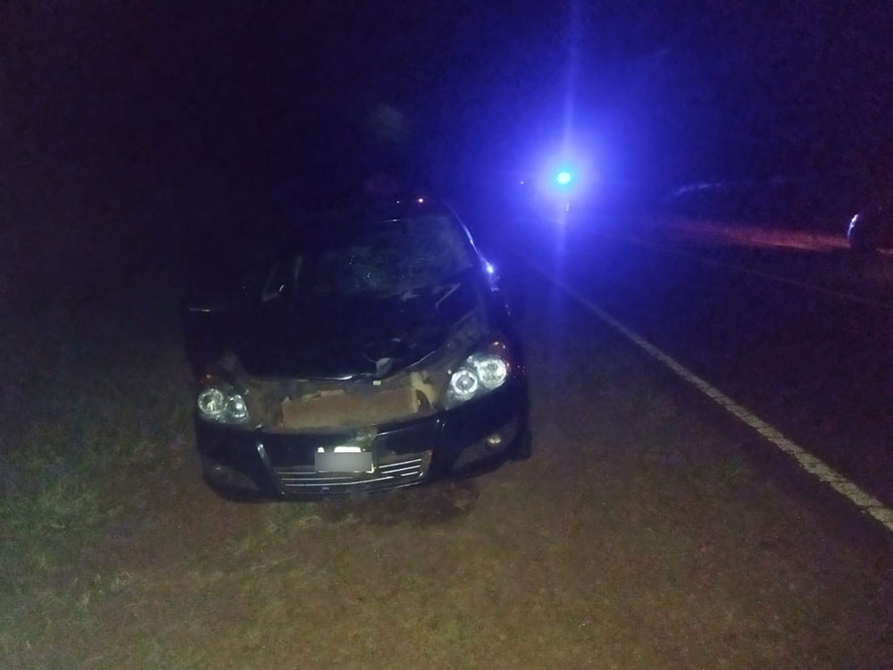 En pleno viaje, un equino se cruzó de repente en la ruta y la colisión fue prácticamente inevitable. Los tres ocupantes del vehículo resultaron ilesos, pero el animal quedó agonizando sobre la cinta asfáltica, fue retirado del camino y luego de minutos murió en el lugar.