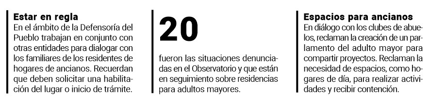 En esta ciudad programan continuar con nuevas inspecciones en residencias de adultos mayores para constatar el estado en el que se encuentran. Desde el Observatorio del Adulto Mayor recuerdan a los familiares que deben verificar que estos espacios cuenten con la habilitación y las adecuaciones necesarias para la población geriátrica.