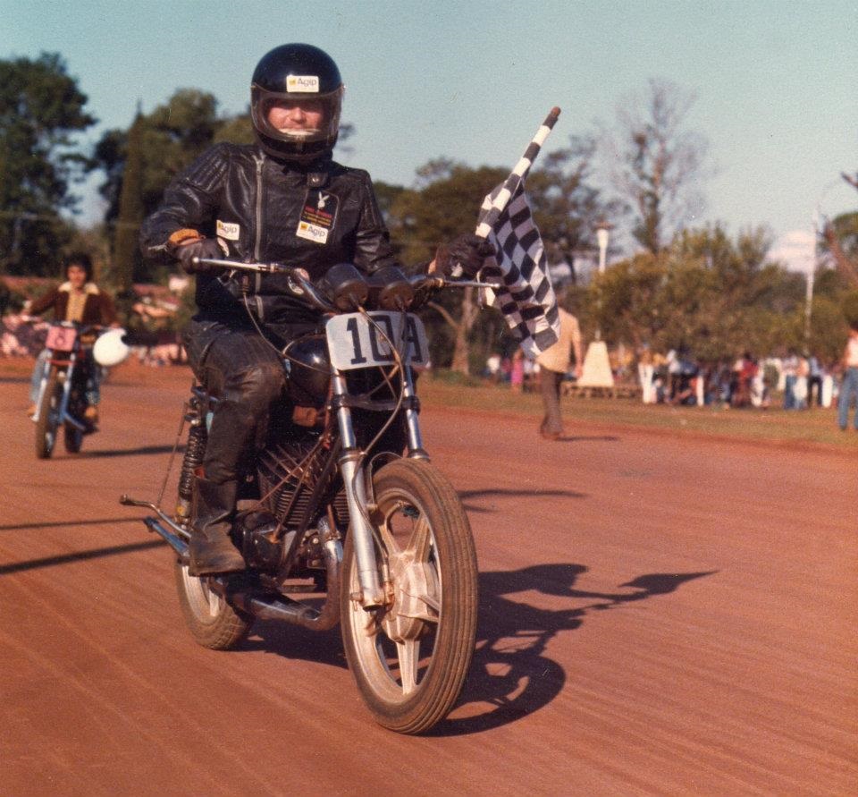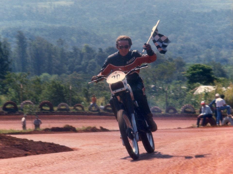 En 1976 se consagró campeón zonal de motociclismo en la categoría 125 cc. preparación libre.