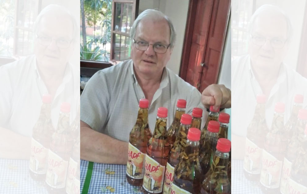 El párroco ya tiene preparado para compartir con los feligreses, después de la misa del domingo, los traguitos de caña con ruda.