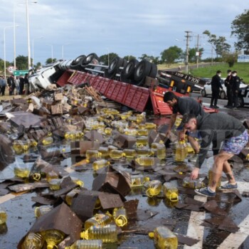 • Volcó camión con vinos en Oberá y los vecinos saquearon la carga