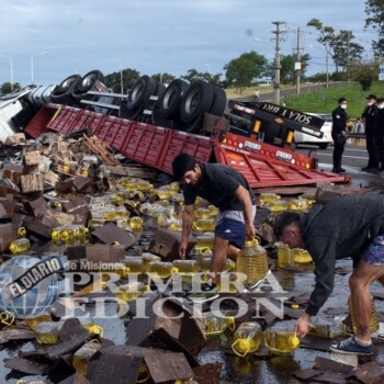 • Volcó un camión que transportaba aceite y la gente se desesperó por conseguir algunos litros