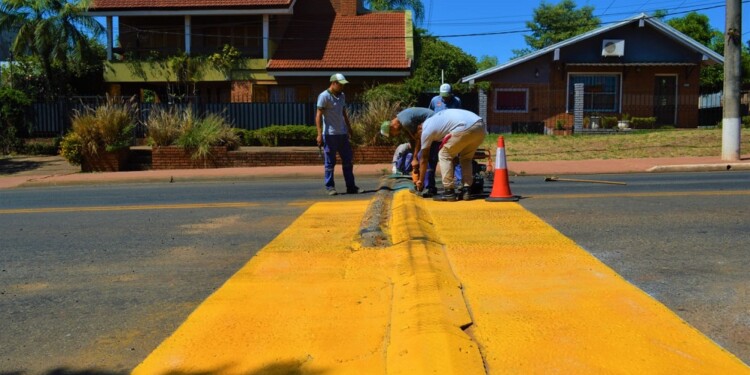 Se avanza en la colocación de reductores de velocidad en distintos puntos de Posadas, con la intención de evitar siniestros viales en cruces de avenidas. Dichas tareas están a cargo de empleados de la Municipalidad capitalina.