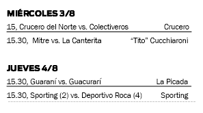 Por otro lado, el duelo entre Crucero del Norte y Colectiveros que estaba pautado para hoy, pasó para el miércoles a las 15. Miércoles y jueves también se desarrollarán otros encuentros para definir a los ocho mejores.
