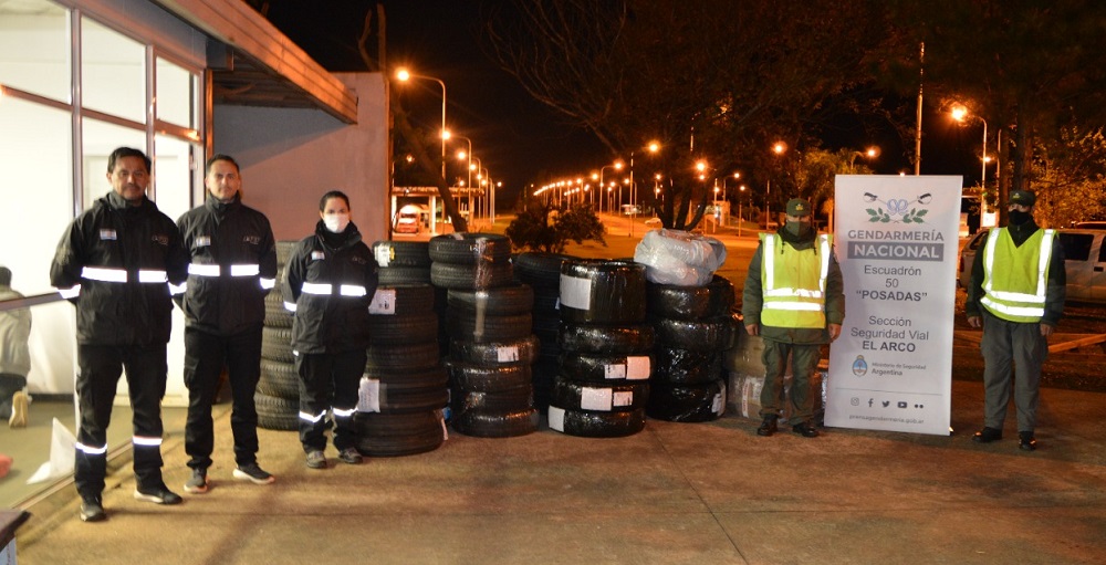 Personal de Gendarmería Nacional y AFIP-Aduana detectaron en las últimas horas la presencia de 111 cubiertas de origen extranjero sin aval aduanero, que eran trasladadas en un vehículo de transporte de cargas, además de 13 cajas cerradas que contendrían más cubiertas, enviadas en la modalidad de encomienda.
