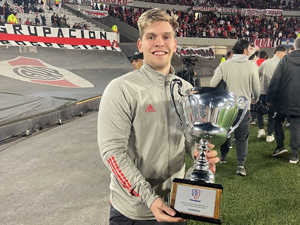 La alegría del misionero en cancha de River Plate fue por partida doble, ya que tuvo la oportunidad de estar acompañado de su papá Omar que viajó especialmente desde Jardín América para estar con su hijo y verlo dar la vuelta olímpica con el trofeo de campeón. Esteban ya hace cinco años que está afincado en Buenos Aires junto a su hermana mayor, Priscila; y hoy una vez más será una jornada para festejar, puesto que este 2 de agosto, el misionero Esteban Kelm está cumpliendo 20 juveniles años.