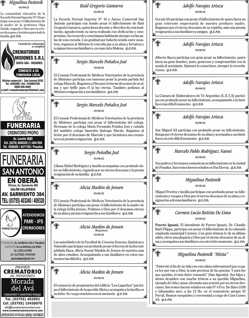Fúnebres del Viernes 5 de Agosto de 2022