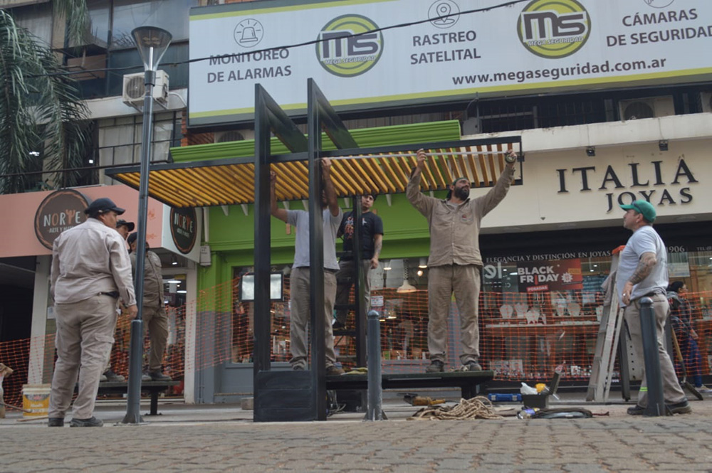 La Municipalidad de Posadas se encuentra embelleciendo el centro capitalino con pérgolas y el reemplazo de las maderas de los bancos.