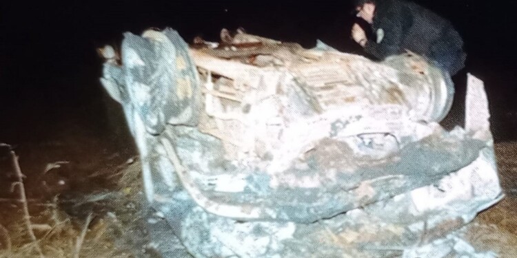 El vehículo, presumiblemente una Ford Ranger, no tenía dominio colocado y estaba en posición invertida y parcialmente sumergido en el mencionado curso de agua.