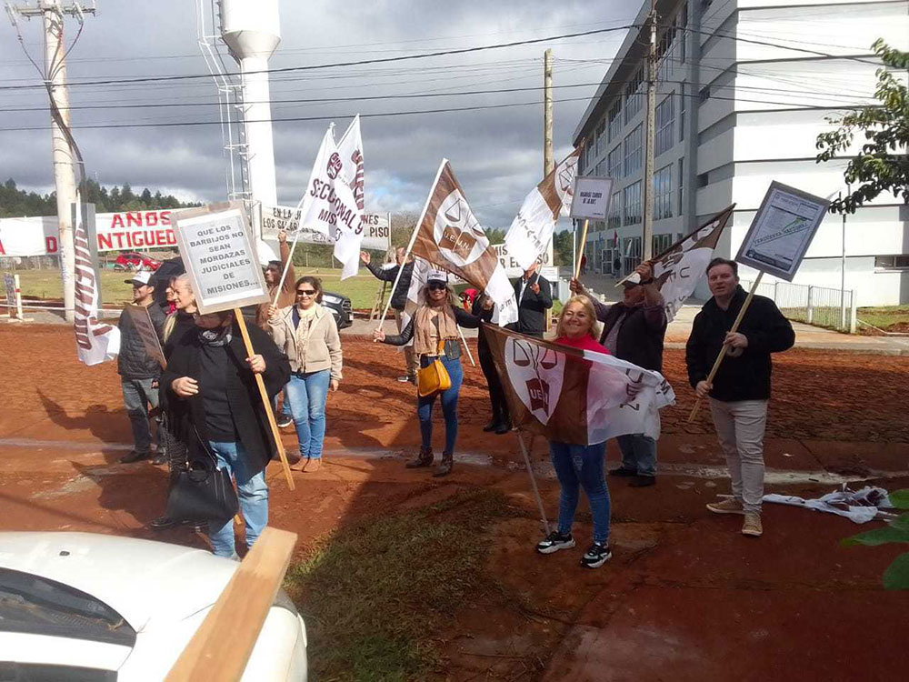Un grupo de trabajadores del Poder Judicial se concentró en la sede de los nuevos tribunales de esta ciudad, ayer, para reclamar por los bajos salarios del sector. Fue durante el acto de inauguración del edificio del Palacio de Justicia local, encabezado por autoridades judiciales, provinciales y el intendente local, Pablo Hassan.