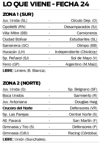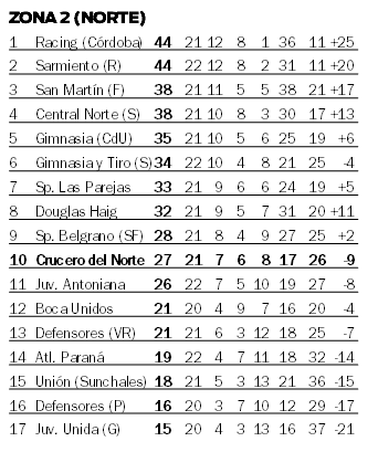 -Los ocho primeros de cada zona clasifican a la etapa final por el único ascenso