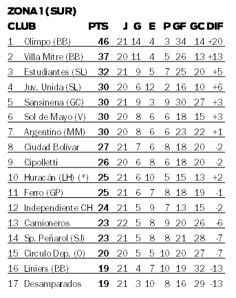 -(*) Se le descontaron 3 puntos por incidentes en el torneo anterior.