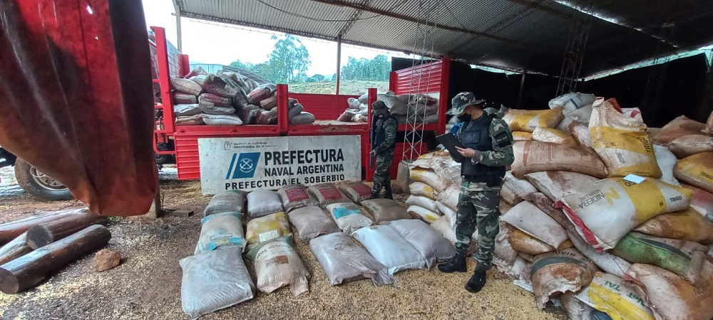 Efectivos de la Prefectura Naval Argentina decomisaron 9.250 kilogramos de granos de soja que iban a ser exportados ilegalmente, en dos operativos que tuvieron lugar en la costa de El Soberbio.