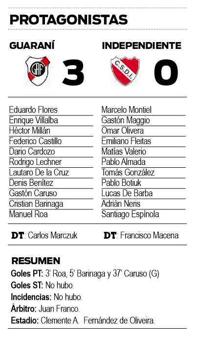 En el complemento no hubo más goles, pero sólo porque Guaraní falló en la definición. Fue muy superior a un rival, gustó en la cancha y sobre todo aseguró la victoria que lo pone en la siguiente instancia donde espera por el ganador del duelo entre Mitre y Sporting.