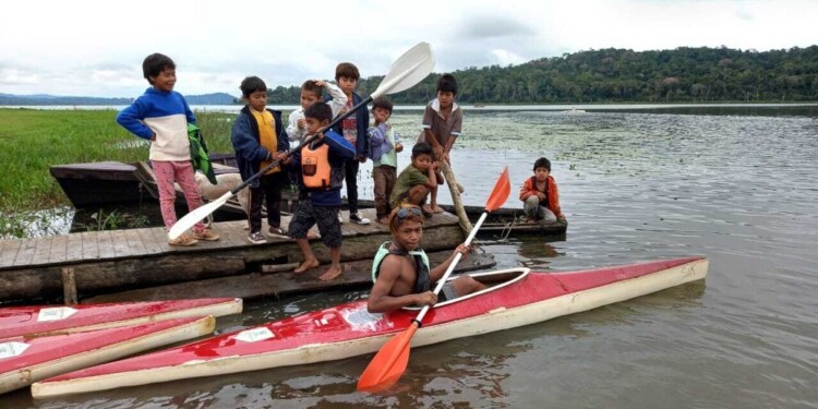 competidores de distintas aldeas de la comunidad mbya guaraní de la zona dijeron presente ayer en el San Ignacio Kayak.