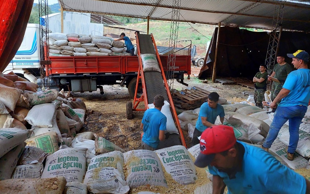 “A partir de ahí comenzamos a ver si era posible destinar esos granos para la producción, antes de que se descompongan y se entierren como suele suceder generalmente en ocasiones similares. En este caso nos encontramos con la dificultad de que los granos de soja sin procesar no se pueden utilizar para la alimentación de animales, entonces coordinamos donarle a una cooperativa de pequeños agricultores que tiene una planta elaboradora de alimentos balanceados y distribuye, y el resto lo donamos a otras que no tienen tanto espacios de almacenamiento”, señaló Páez.