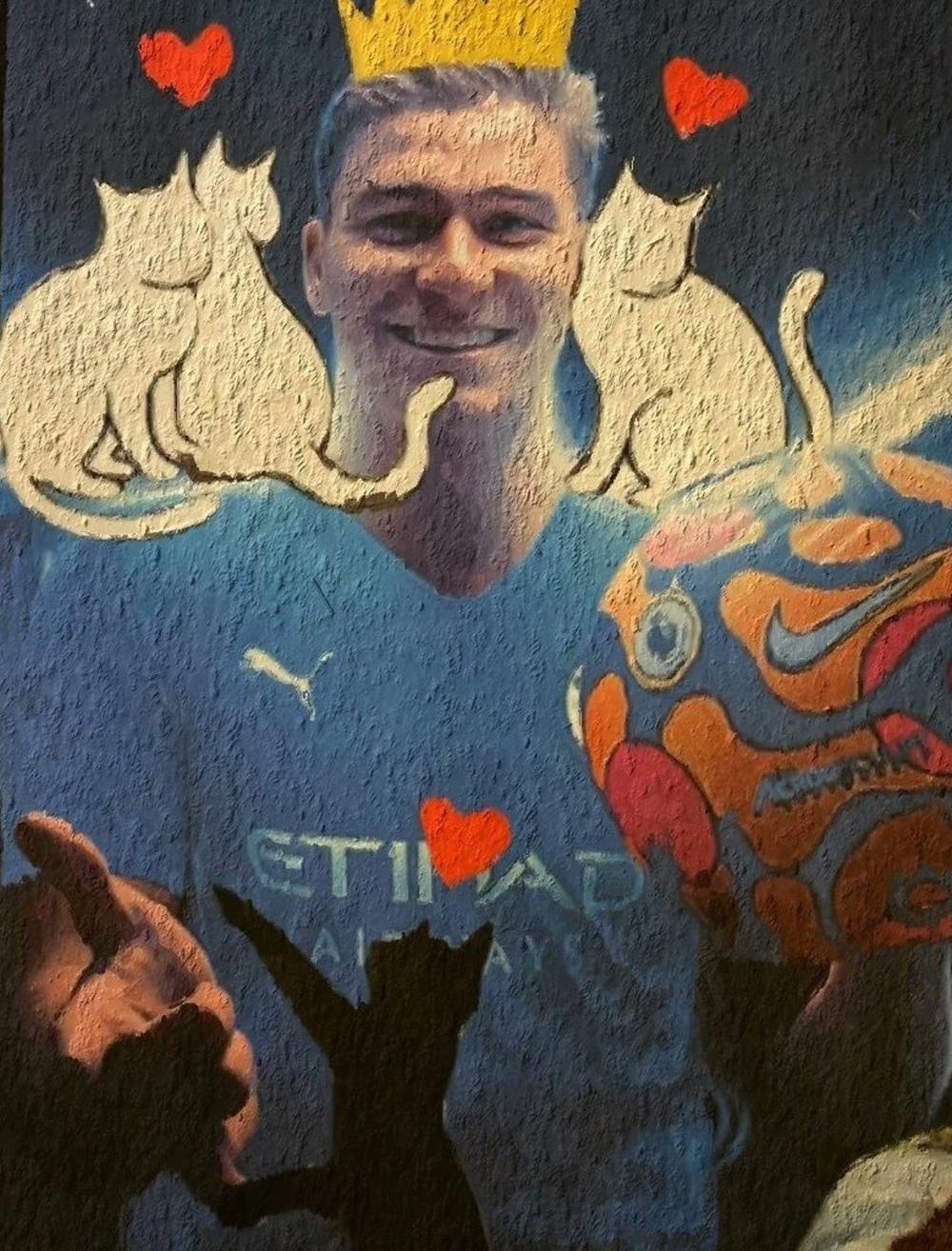 Es por esto que los fanáticos del City presentes en el estadio comenzaron a cantar: “¡Así se sintió tu gato!”, mientras Zouma intentaba reponerse del duro golpe. Lejos de parar ahí, el agradecimiento de los fanáticos fue más allá. Al oriundo de Calchín le hicieron un mural.