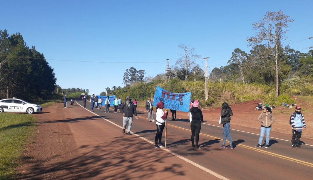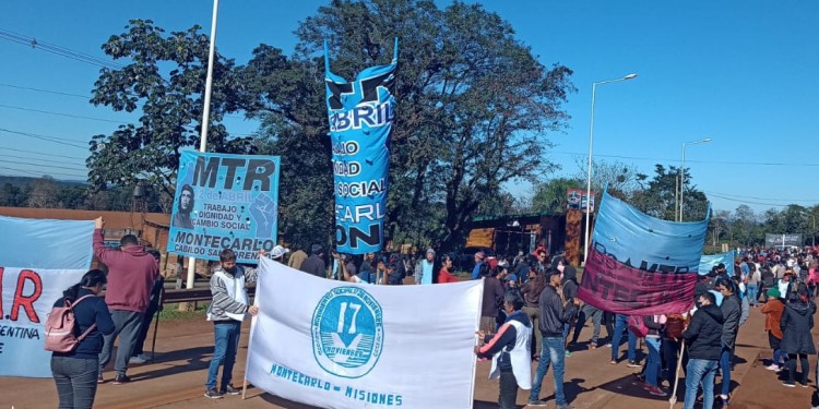 En Montecarlo, más de 150 personas se concentraron en el kilómetro 1519 de la ruta nacional 12, donde cortan totalmente el paso del tránsito.  Son personas que responden al Movimiento Teresa Rodríguez (MTR), Movimiento Argentina Rebelde (MAR) y Frente Popular Darío Santillán.