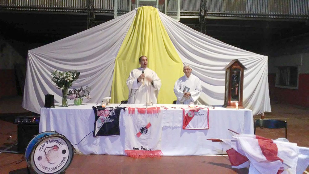 Precisamente fue el último lunes que la institución “franjeada” recibió al “Santo” en el salón ubicado debajo de la tribuna sur, donde se realizó la misa en un clima de mucho respeto y camaradería, ante una buena cantidad de vecinos que aprovecharon la ocasión para bendecir camisetas y banderas con los colores tradicionales de Guaraní como así también las propias instalaciones del club de sus amores.
