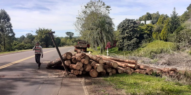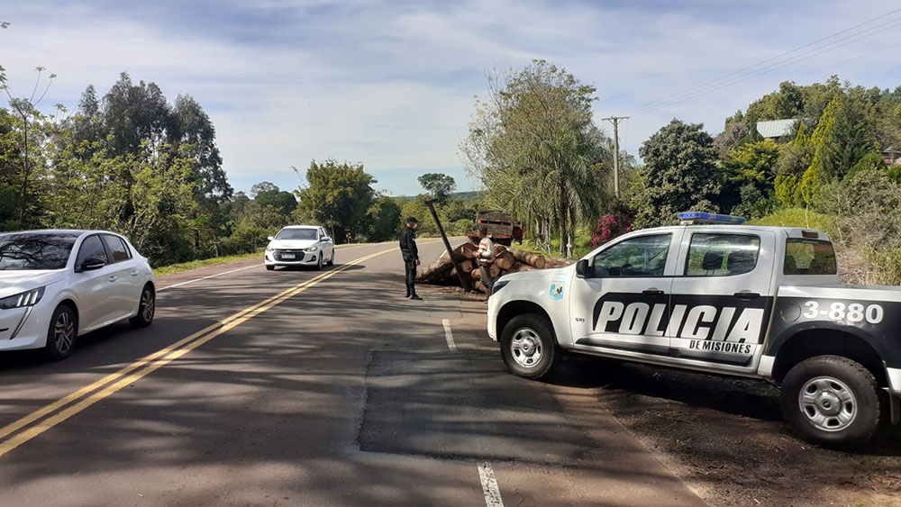 Rollos de pino trasladados por un camión cayeron sobre la ruta en Oberá