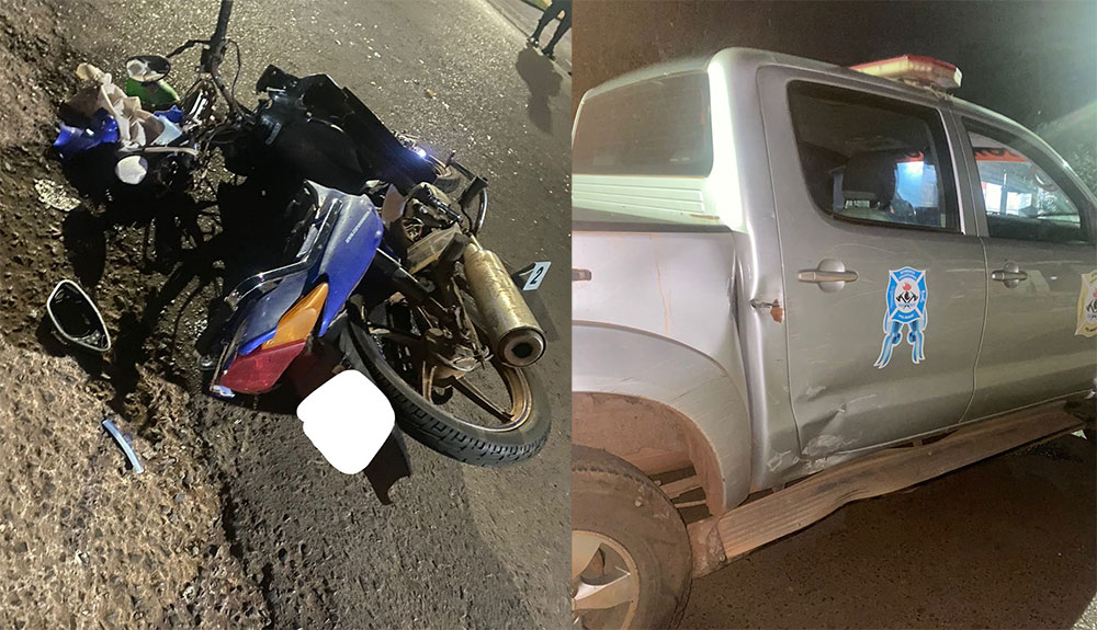 Durante la noche de este viernes, en la intersección de las calles Martha Schwartz y Bernabé Méndezde Puerto Iguazú, una Toyota Hilux de los Bomberos Voluntarios de esta localidad y una motocicleta Corven de 110cc protagonizaron un siniestro vial.