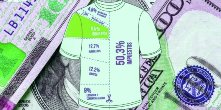 En efecto, un 75% del precio que abona el consumidor final por una remera en un shopping se utiliza para pagar impuestos, servicios financieros y alquileres, según el informe.