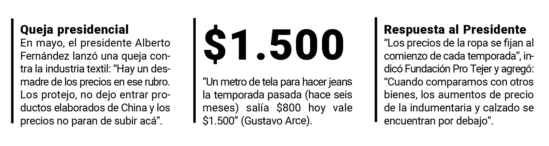 En mayo, el presidente Alberto Fernández lanzó una queja contra la industria textil: “Hay un desmadre de los precios en ese rubro. Los protejo, no dejo entrar productos elaborados de China y los precios no paran de subir acá”.
